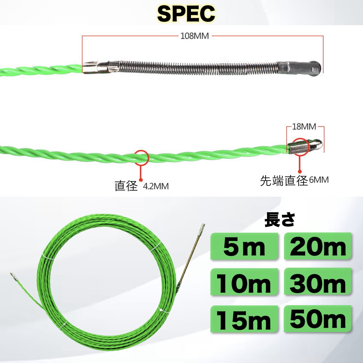 通線 ワイヤー 入線 工具 配線通し 通線ロッド CD管 PF管 緑色 幅4mm×15m