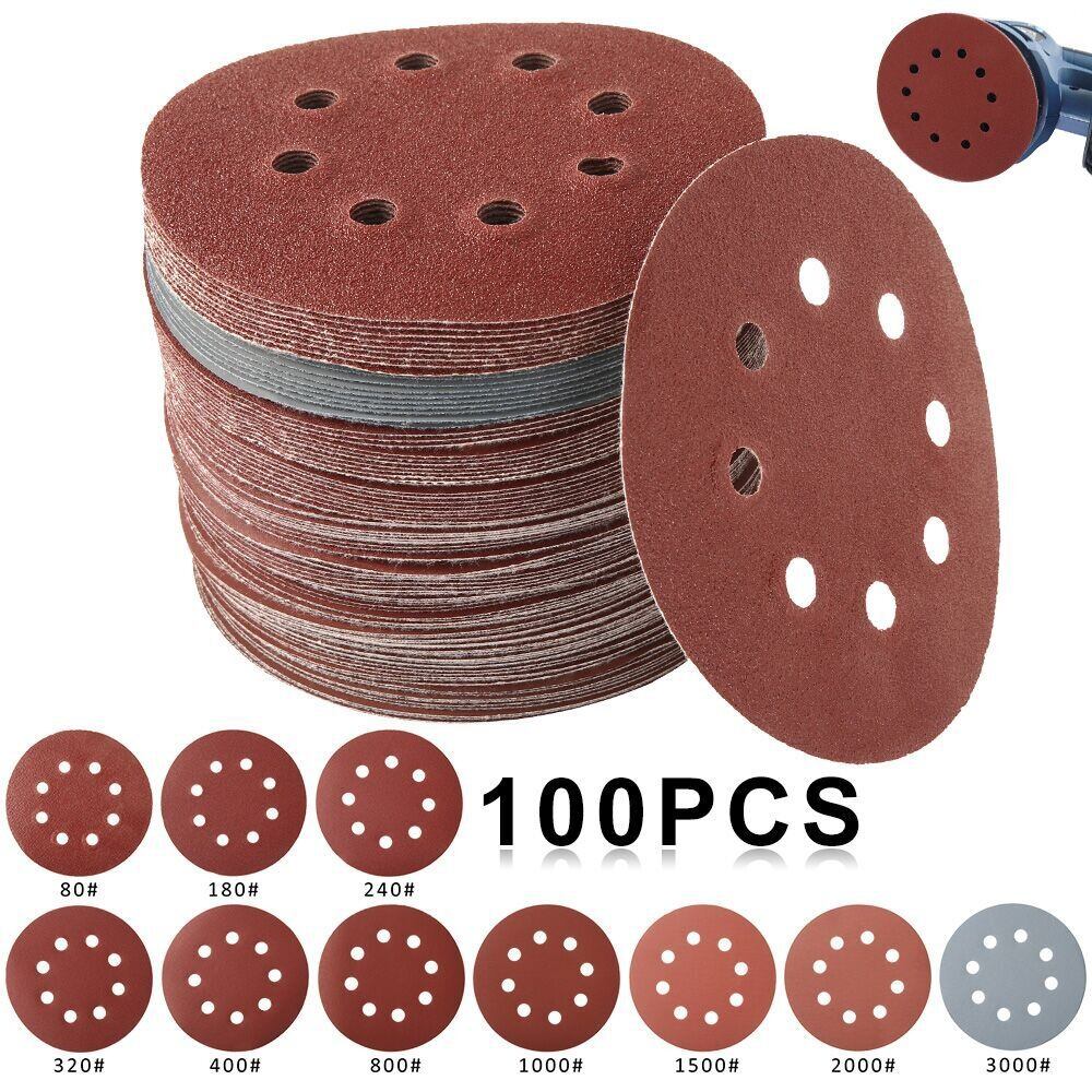 ディスク ペーパー サンドペーパー 125mm 8穴 研磨 研削 マジック式 多番手セット 100枚入