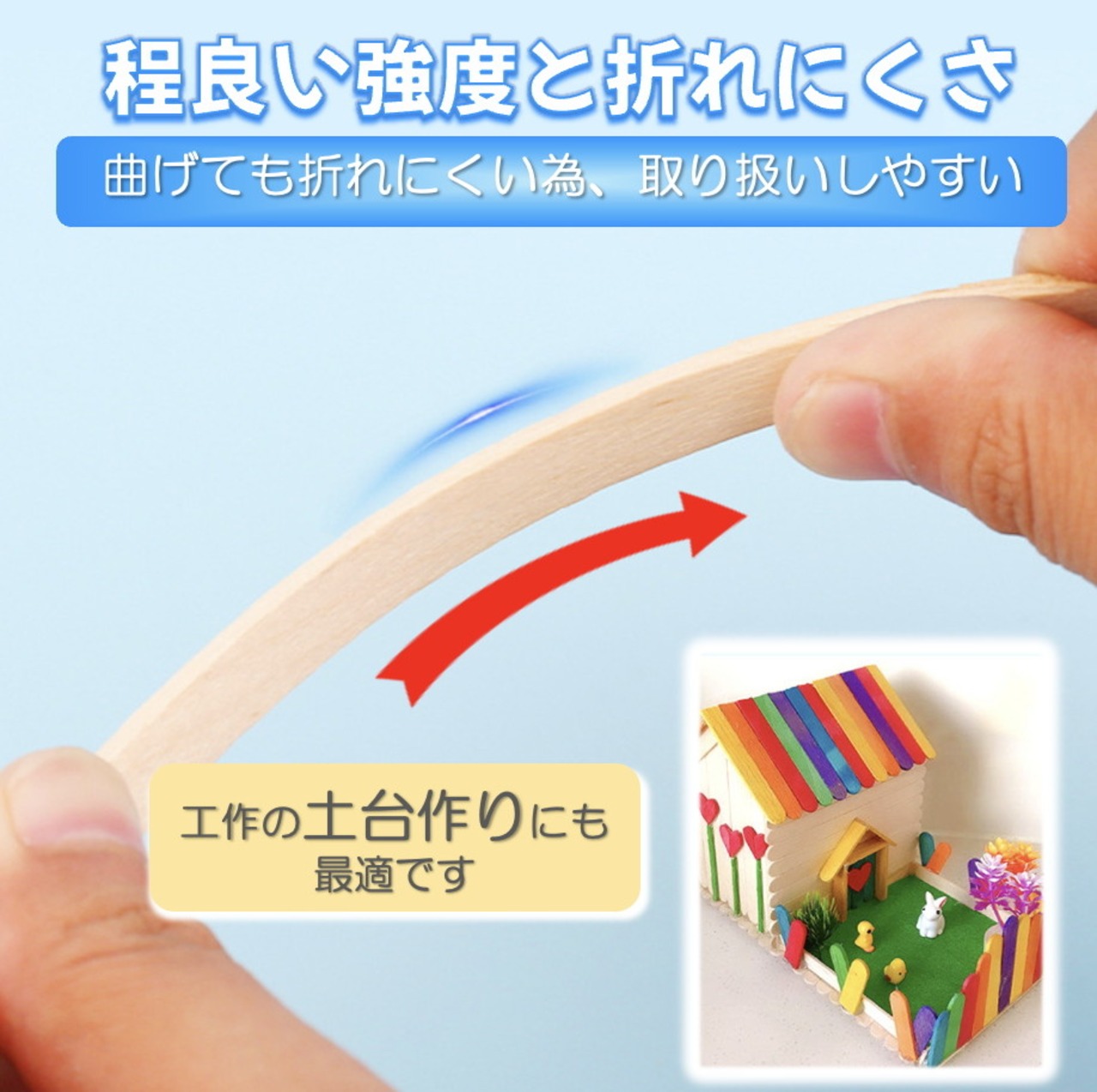 工作用 木製 スティック 500本 セット DIY 工作 手作り 材料 カラフル 工作素材 125×10mm, 無垢