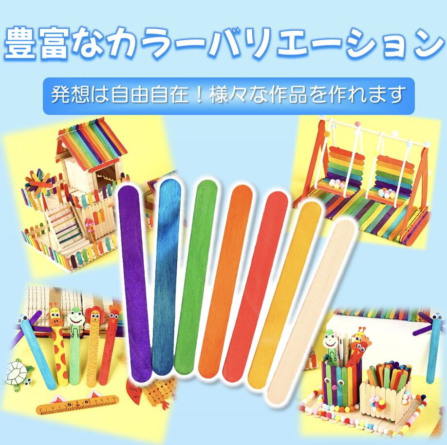 工作用 木製 スティック 500本 セット DIY 工作 手作り 材料 カラフル 工作素材 93×10mm, 6色セット
