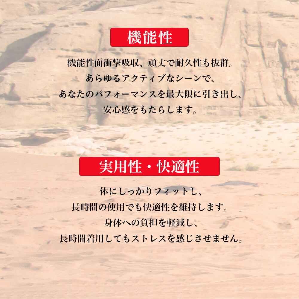 サバイバルゲーム、自転車、スケートボード、スキー、登山、フィールドワークなど多様なアクティビティに対応する汎用プロテクターセットです。動きやすさと保護性能を両立し、体を守りながらアクティビティをより快適に楽しめるよう工夫されたアイテムです。アクティブな環境での使用を想定したつくりで、装着感、耐久性、柔軟性を備えています。頻繁に動く場面でもズレにくく、長時間の活動に適した仕様となっています。