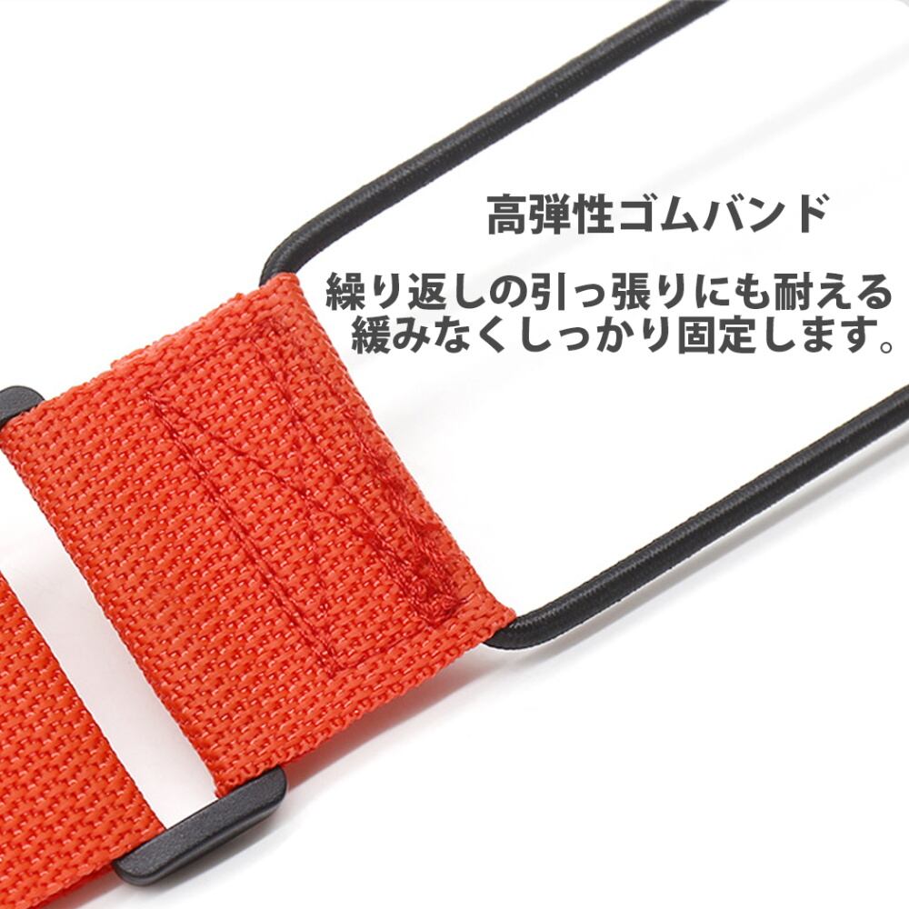 キャリーバッグの上にサブバッグを固定し、移動中のズレや落下を抑えるスーツケース用荷物固定ベルトです。ベルト部分は約26?40cmで調整でき、伸縮ゴム部を含めると全長約50?64cmまで対応。小型から大型まで幅広いスーツケースに使えます。取り付けはキャリーケースのハンドルに通して伸ばすだけの簡単仕様で、旅行前の準備時間を取らずに使えるのが魅力です。金具を使わない布地と樹脂パーツの構造でバッグの表面に当たりにくく、扱いやすい素材設計です。強度のある布地と伸縮ゴムを採用しており、繰り返しの使用にも対応しやすい構造です。使わないときは小さく折りたたんで収納できるため携帯性も良く、キャリーケースのポケットに入れてもかさばりません。ビジネスからレジャーまで幅広いシーンで使えるシンプルなデザインで、男女問わず取り入れやすいアイテムです。旅行や出張での荷物管理を効率化し、移動をより快適にしてくれる便利なトラベルグッズです。