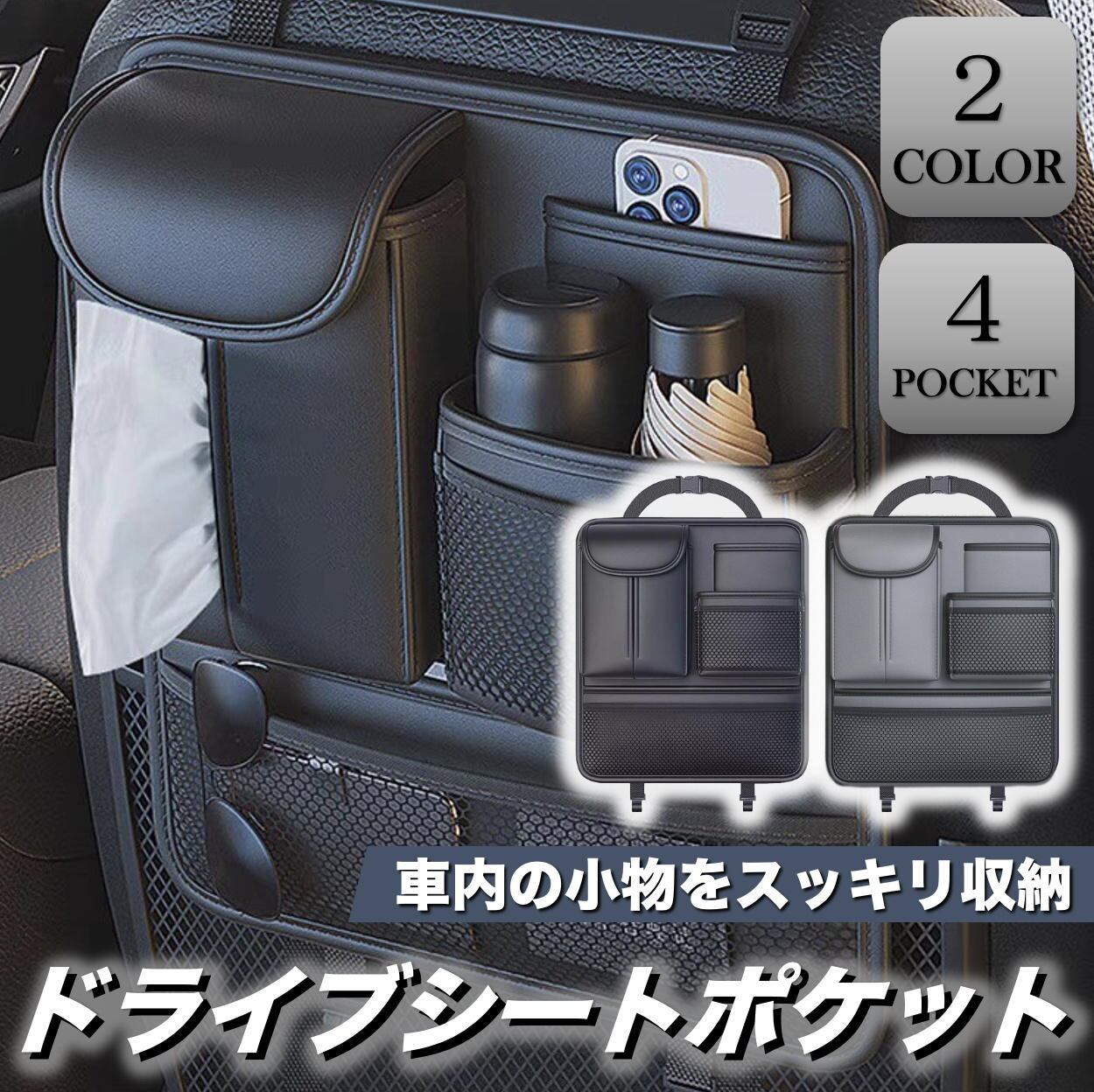 車用 シートバック ポケット 後部座席 多機能 収納 ドライブ 収納袋 ティッシュホルダー レザー 大容量