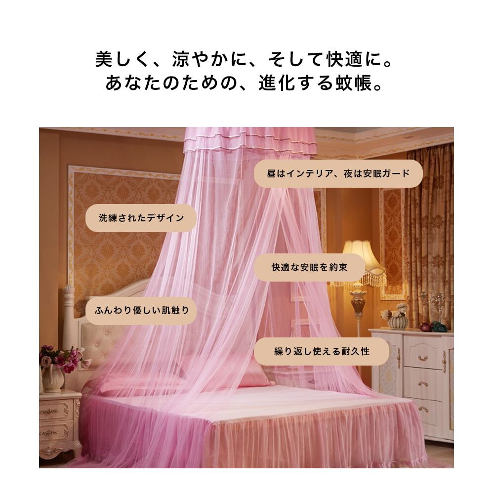 天蓋 カーテン 蚊帳 吊り下げ式 ベッド 円柱型 防虫 安眠 モスキートネット インテリア 寝室用に