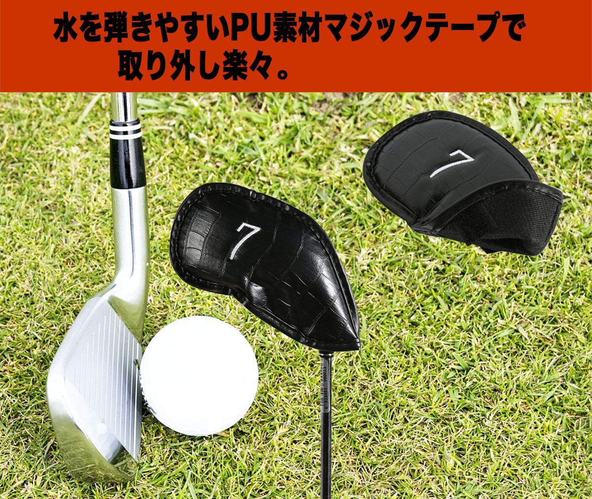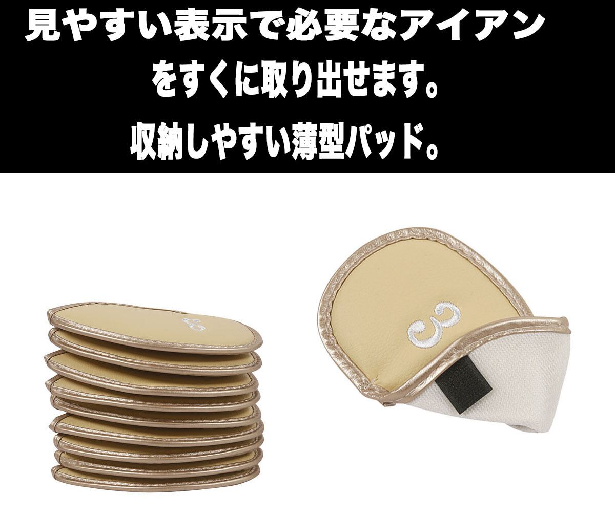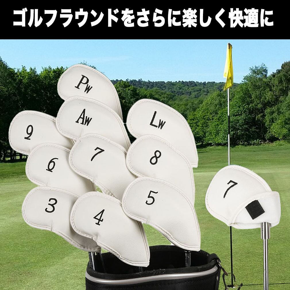ゴルフ アイアンカバー ヘッドカバー 12点セット PUレザー 番手表示 薄型 収納便利