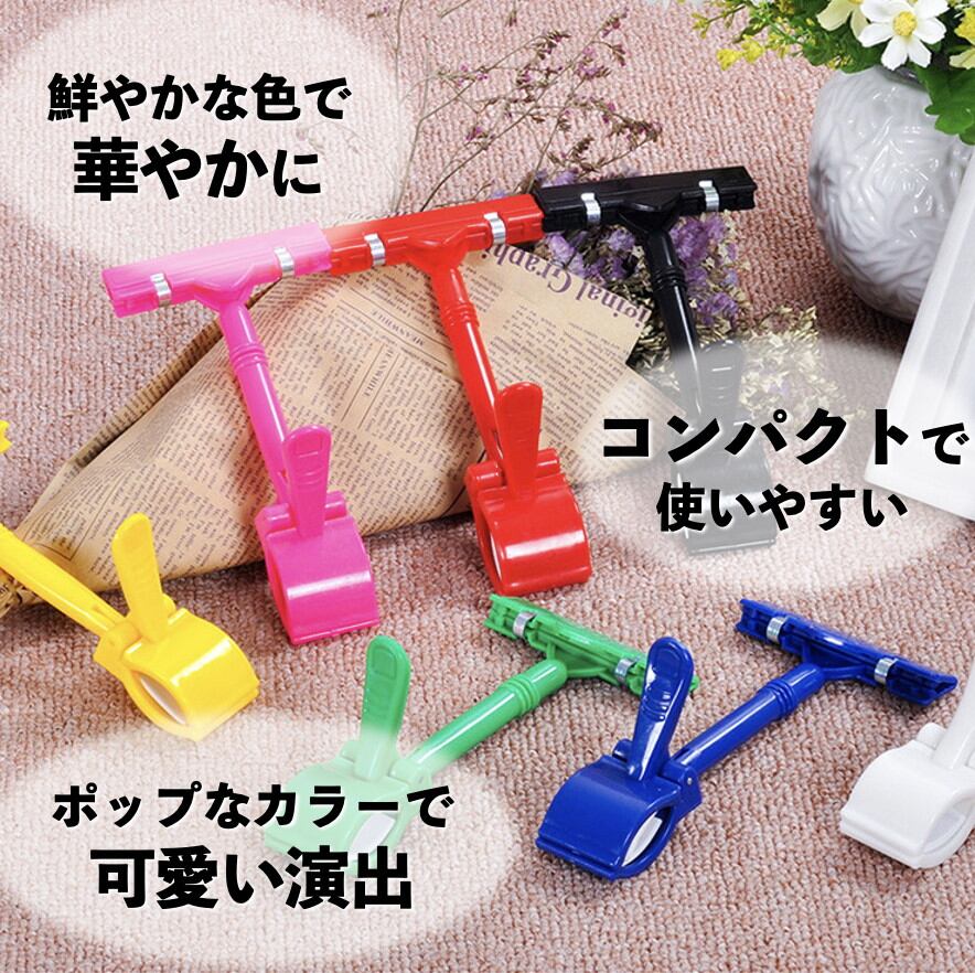 本製品はプライスカード、メニュー、写真、案内カードなどの掲示に使える多用途ポップクリップです。全長約17cmの扱いやすいサイズで、上部クリップは360度回転し、視認性を高める角度調整が可能です。下部クリップは約5cmまで開いて棚やボックスにしっかり固定でき、売り場やイベント会場で安定した掲示ができます。コンパクトな先端クリップは紙面を広く見せ、POPの内容を引き立てます。軽量なプラスチック素材で扱いやすく、汚れを拭き取りやすいため日常的な使用にも適しています。豊富なカラーバリエーションをそろえており、店舗の雰囲気やイベントに合わせて選べる点も魅力です。便利な10個セットで複数箇所にまとめて設置でき、統一感のあるディスプレイづくりに役立ちます。
