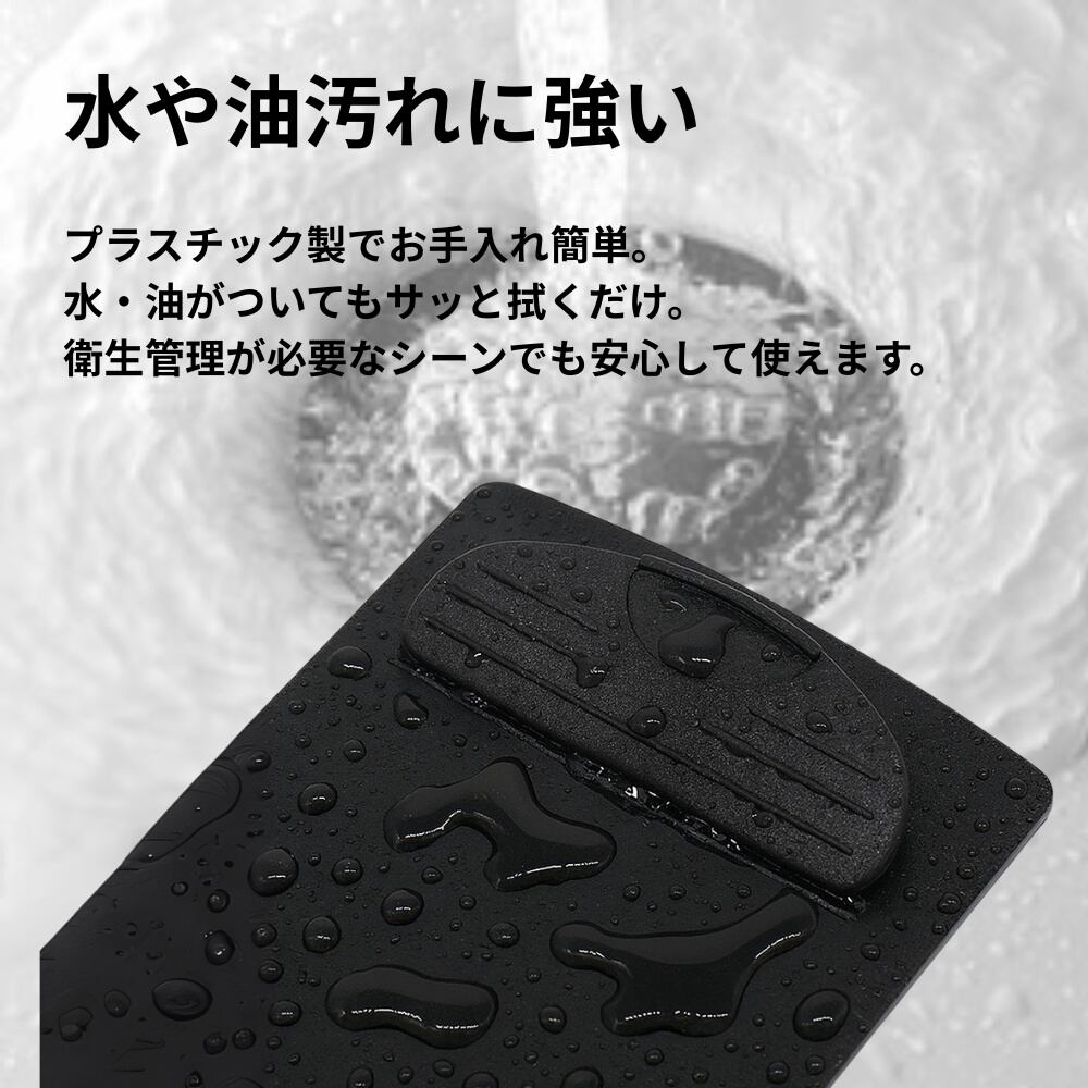 本製品は、飲食店や事務所、受付など幅広い現場で活躍する伝票ホルダーです。薄い紙でもしっかり挟める強力クリップと、片手で開閉しやすい溝付き構造により、忙しい場面でもスムーズに伝票を扱えます。本体は軽量で衝撃に強いABS樹脂製。約18×8cmの扱いやすいサイズで持ち運びしやすく、立ったままの作業にも適しています。表面は滑りにくいマット加工で、書き込みがしやすい仕様です。水や油に強く、お手入れも簡単なため日々の使用後もすぐに整えられます。シンプルで用途を選ばないデザインは飲食店やオフィス、学校、イベントなど幅広く対応。省スペースで収納しやすく、単品または複数セットで導入しやすい構成です。業務効率を高める実用性に優れ、長く使える伝票ホルダーです。