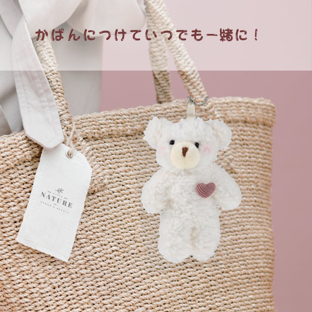 熊のぬいぐるみをモチーフにした可愛いキーホルダー。ふわっと柔らかな触り心地と丸みのあるフォルムが魅力で、手のひらサイズながら存在感があります。全長約13cmで軽量のため、鍵やバッグに付けても邪魔にならず持ち歩きに便利です。丈夫な金具を採用し、日常使いしやすい仕様。バッグチャームとしても活躍し、通勤・通学・お出かけバッグを華やかに彩ります。カラー違いのハートチャームで種類が選べ、友達やカップルでお揃いにするのもおすすめ。誕生日や記念日の贈り物としても選びやすく、幅広い世代に人気です。可愛さと実用性を兼ね備えた熊のキーホルダーは、自分用にもプレゼント用にもぴったりのアイテムです。