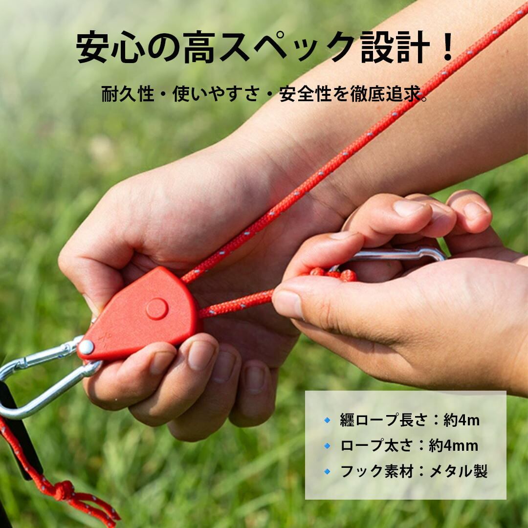 ロープラチェット 4個セット テント タープ 固定 カラビナ付き アウトドア 設営 簡単