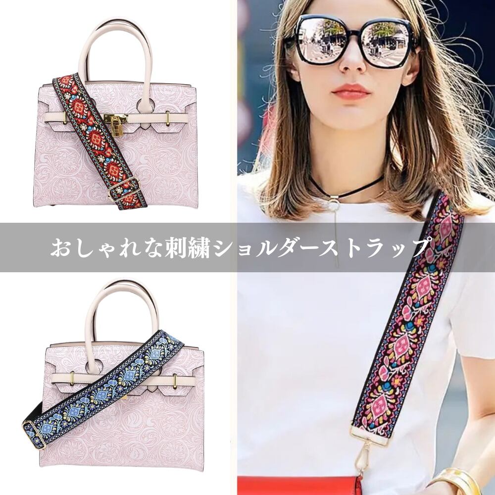 ショルダーストラップ 刺繍 幅広 花柄 ボヘミアン 調整 付け替え バッグ 用